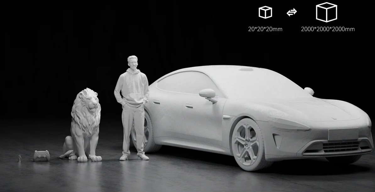 El Otter Lite ofrece la posibilidad de escanear varios objetos, con tamaños que van desde 20*20*20mm³ hasta 2000*2000*2000mm³, desde una pequeña concha hasta un coche, todo en un solo escáner.