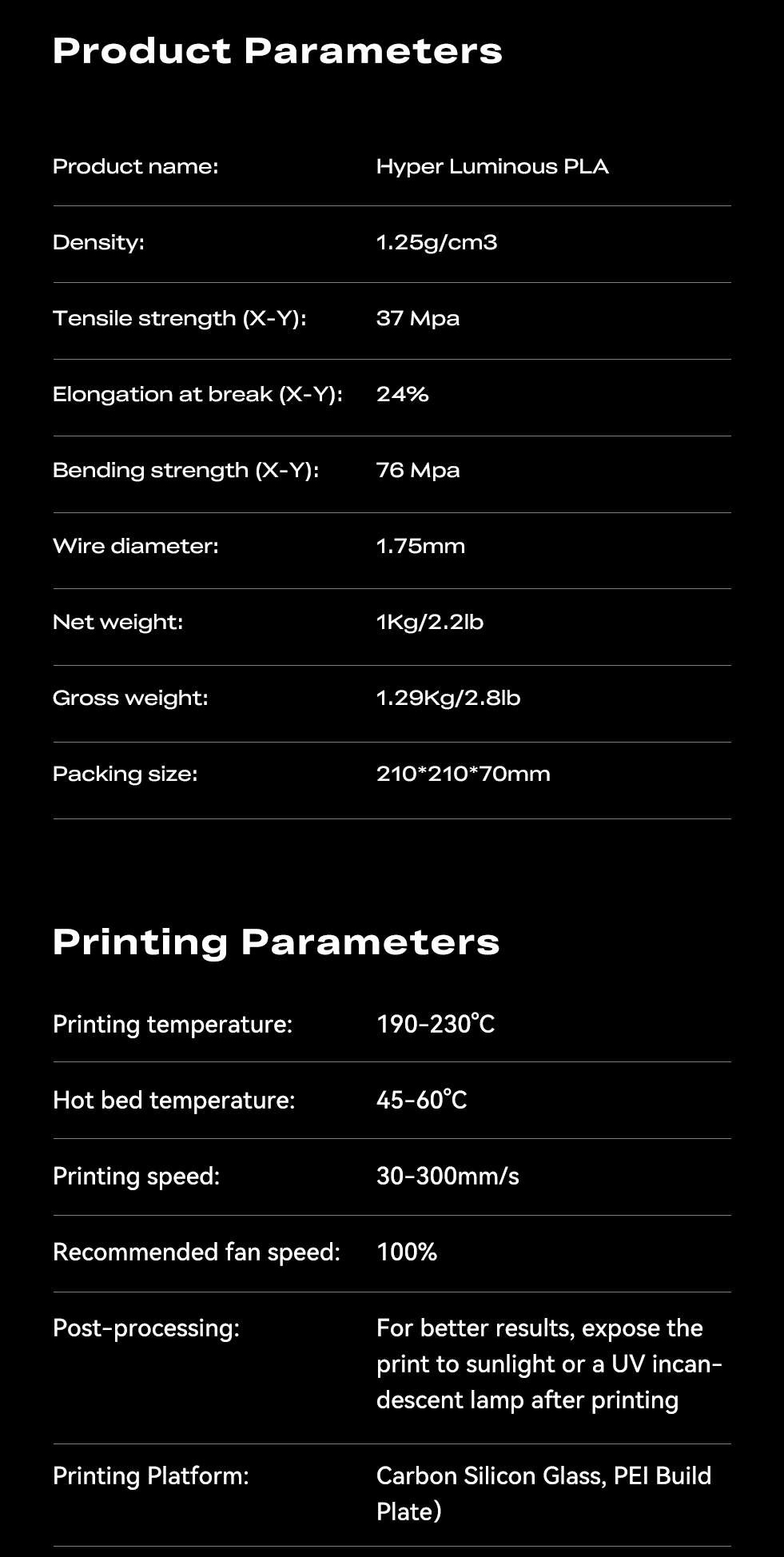 Filamento PLA Creality Hyper Luminous 1kg 1.75mm