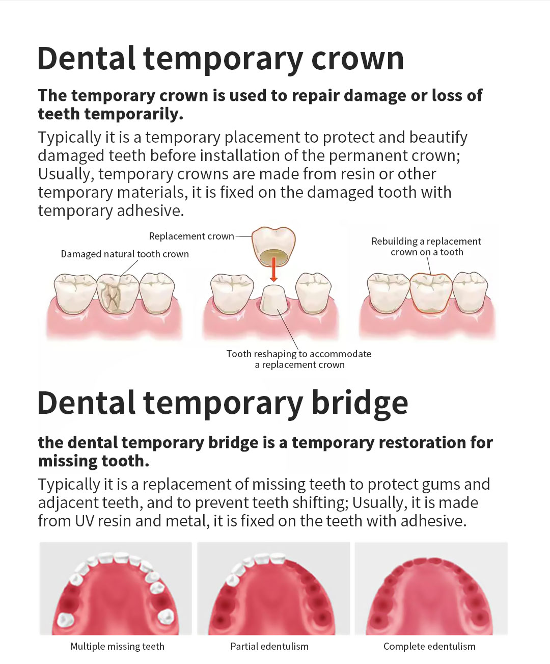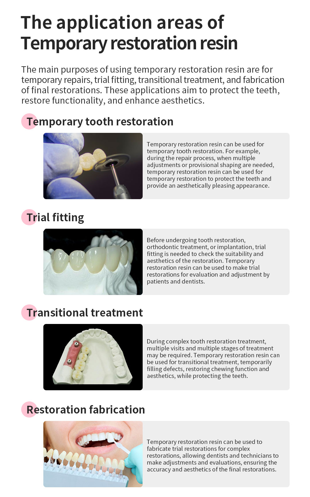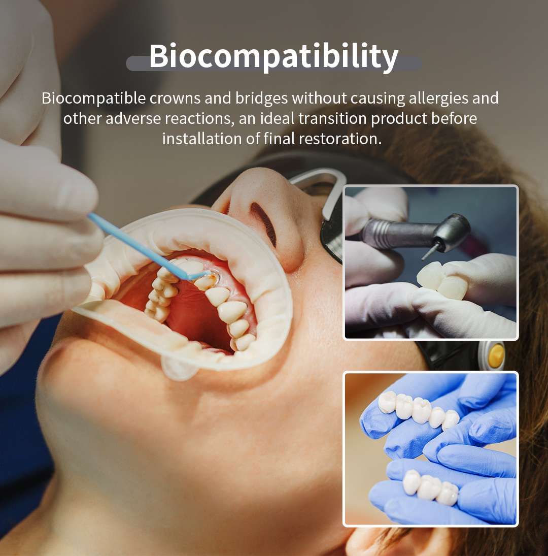Aplicación: Coronas temporales/modelos invisibles, modelos de prueba en diversas aplicaciones dentales y médicas.