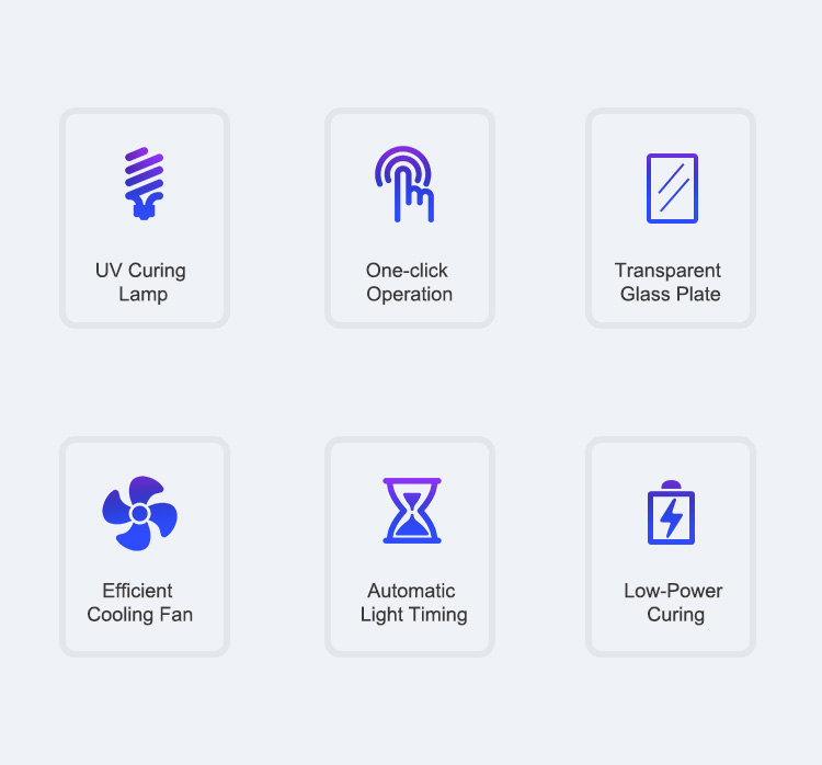 La interfaz intuitiva permite a los usuarios configurar los tiempos de curado según los requisitos específicos de la resina. Desde detalles delicados hasta modelos más gruesos, puede ajustar el proceso de curado para obtener un rendimiento y un acabado visual óptimos.