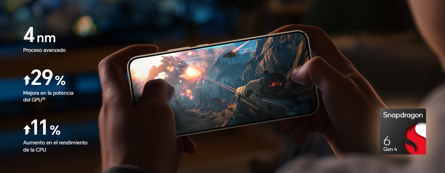Potenciado por la totalmente nueva plataforma móvil Snapdragon® 6 Gen 4, y optimizado con gestión de recursos a nivel de sistema con IA para un desempeño fluido y estable.