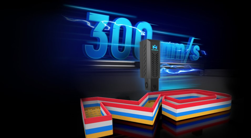 La velocidad de impresión de la AD-F4 alcanza hasta 300 mm/s, con una aceleración máxima de 10000 mm/s², y solo 0,035 s de aceleración de 0 a 300 mm/s, logrando una impresión ultraeficiente.