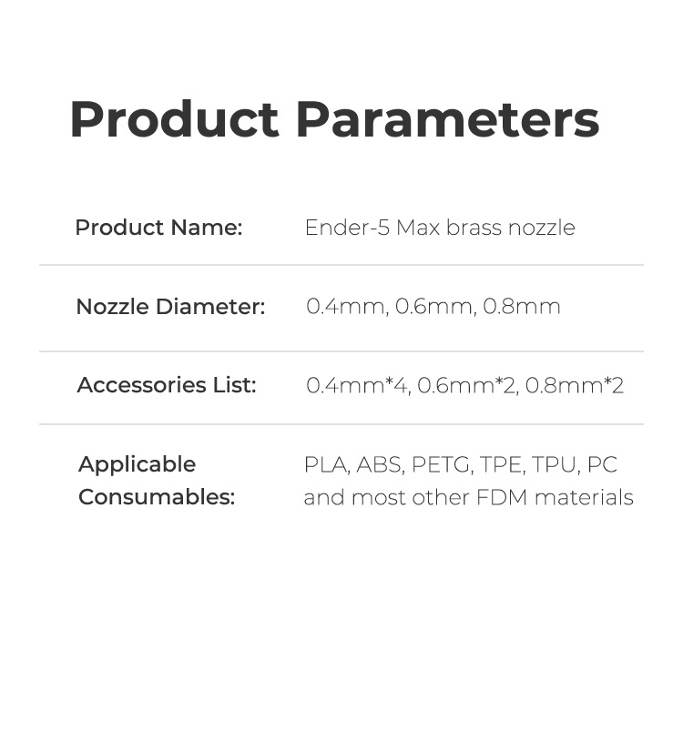 Modelo Kit de Boquillas de Latón Ender 5 Max