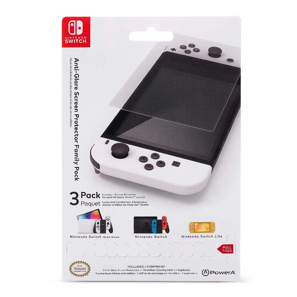 Protege todas las pantallas de Nintendo Switch de tu vida. El paquete familiar antirreflejos PowerA para Nintendo Switch ofrece pantallas sin reflejos y protección contra rayones y huellas dactilares. El paquete incluye tres tamaños de pantalla, uno para cada miembro de la familia Nintendo Switch... ¡y el tuyo! Minimiza el reflejo y protege tus pantallas de rayones con este kit con todo lo que necesitas para el modelo OLED de Nintendo Switch, Nintendo Switch y Nintendo Switch Lite.