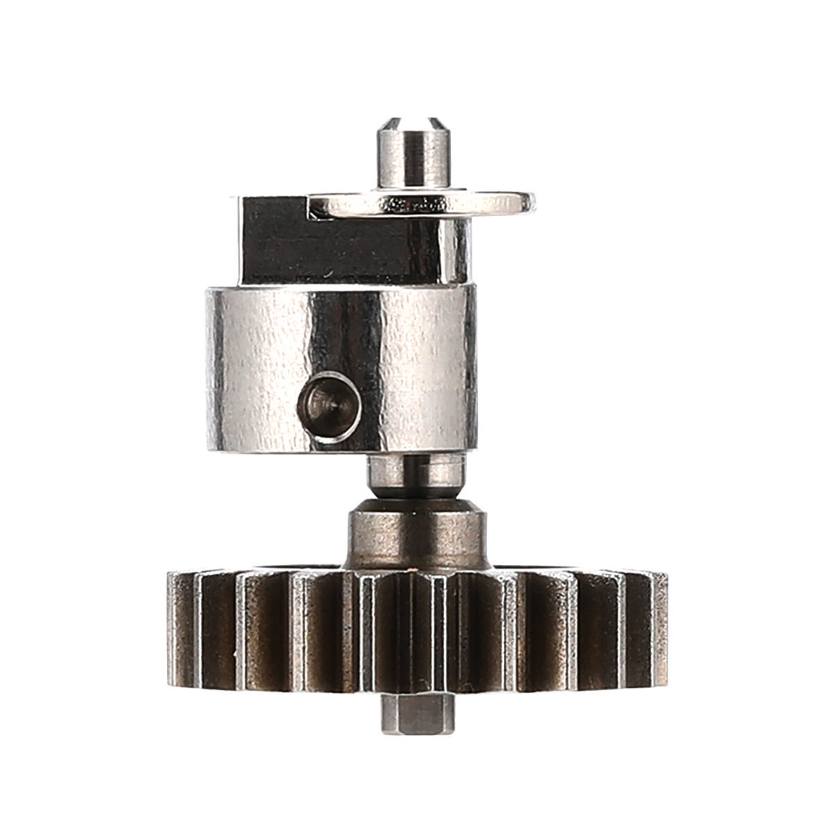 El sistema de conmutación del extrusor funciona mediante un motor de conmutación y un mecanismo de transmisión que acciona la leva de conmutación del extrusor. Esta acción hace que las varillas de las ruedas motrices izquierda y derecha (varillas motrices) oscilen. Un resorte de tensión, unido a la varilla motriz, asegura que una rueda motriz presione firmemente contra la rueda motriz, lo que permite la extrusión del filamento mientras esta gira. Simultáneamente, la rueda motriz opuesta permanece desacoplada, evitando el movimiento indeseado del filamento.