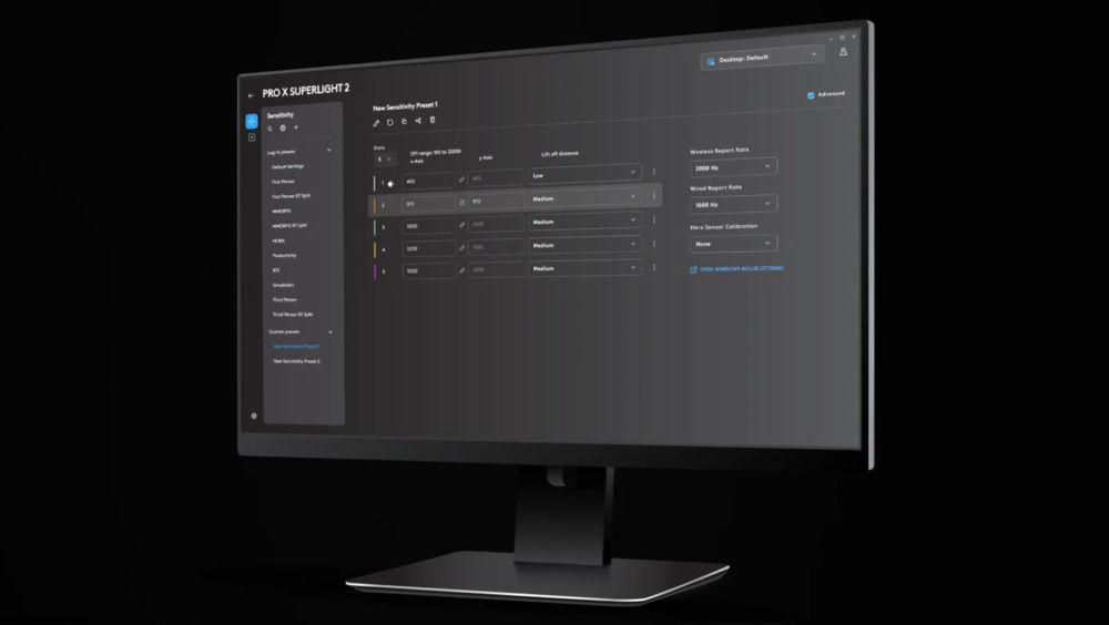 La calibración precisa del sensor permite un ajuste preciso e independiente de los ejes X e Y, tolerancia de elevación ajustable para que coincida con el agarre y el movimiento, y es fácil de sincronizar con la configuración de sensibilidad de otro ratón, todo a través de Logitech G HUB.