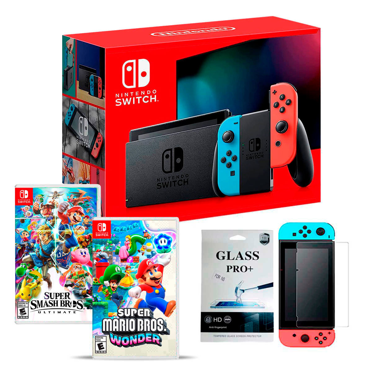 - Juego Super Mario Bros.™ Wonder en Formato Físico adentro de la caja de la consola. Este juego no se puede cambiar.