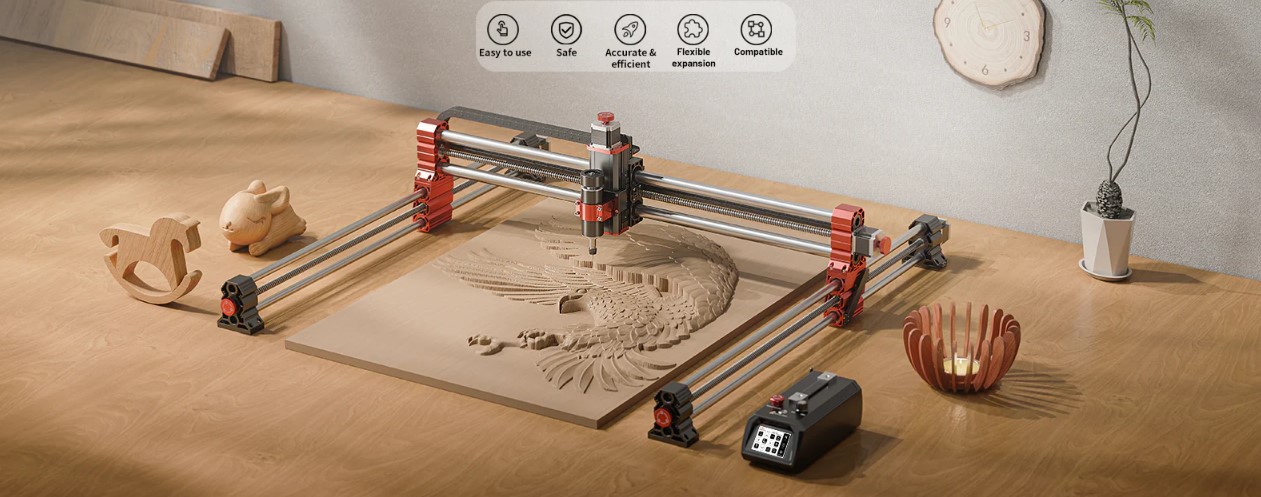 Ideal para crear piezas funcionales como muebles personalizados y artículos decorativos como señalización personalizada. Tiene la capacidad de grabar en relieve, agregar profundidad y textura.